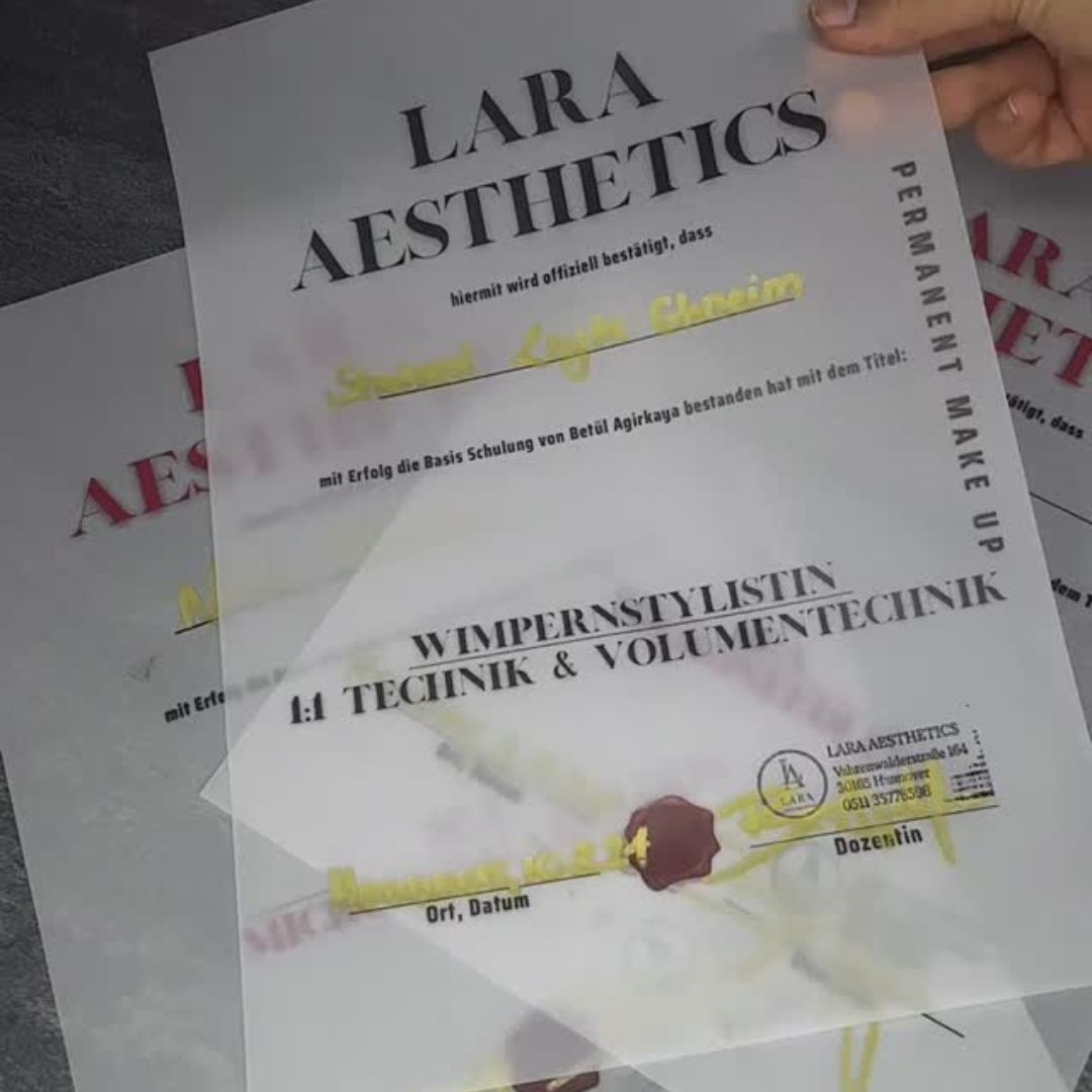 Die Wimpern- und Augenbrauen-Schulungen bei Lara Aesthetics Hannover vermitteln dir Techniken auf höchstem Niveau – praxisnah, präzise und professionell. Lerne die Wimpernverlängerung in 1:1- und Volumentechnik, erhalte fundierte Kenntnisse im Brow & Lashlifting und profitiere von unserem Online Browlifting Zertifikatskurs. Jede Schulung verbindet Wissen, Übung und Perfektion, damit du deine Fähigkeiten gezielt ausbaust und dich erfolgreich am Markt positionierst.